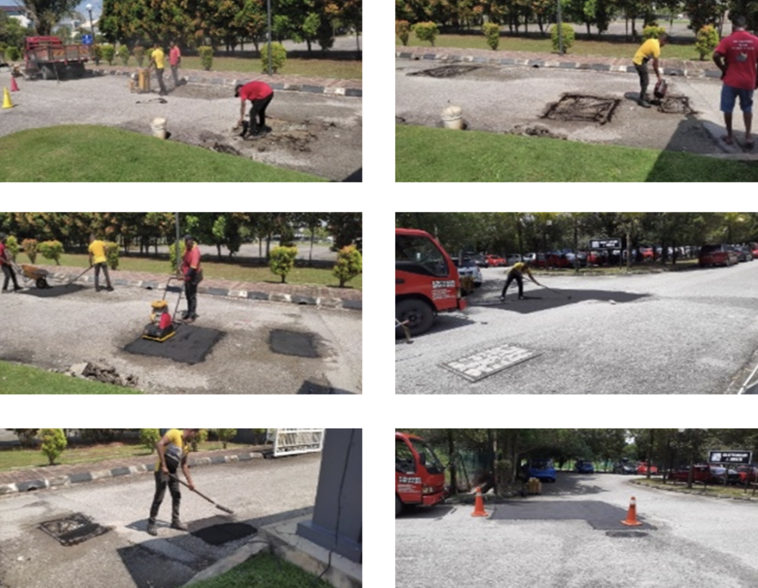 Pothole Patching Works at the Selangor State Youth and Sports Complex (KGMS) Section 7, Shah Alam, Selangor Darul Ehsan.